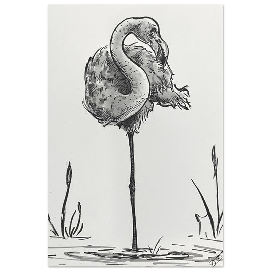 Flamingo Illustration Aluminium Print